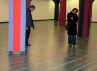 ‘HOME SWEET HOME: discovering a new space’, was the title of the exhibition with which the Stadsgalerij Heerlen marked its move to the Glaspaleis, converted into an arts centre. Seven artists were invited for a housewarming of the chilly, low space allotted to the museum. Franck Bragigand painted the 24 octagonal mushroom-shaped columns transecting the space in vivid colours. Wapke Feenstra chose to leave the floor to the Stadgalerij’s collection itself. Literally. She took twelve people with her into the storeroom and wrote down their widely divergent remarks. ‘Here he is making use of the colour spectrum, applying for instance skin tints,’ the curator stated with regard to a particular painting. The local artist about the work of a colleague: ‘As a person he matches perfectly with his work. His work has a bow tie too.’ And the young girl about the same work: ‘Nice, because I love kitsch and bright colours.’ The man from the technical department responded very practically: ‘So as not to damage the frame we put foam rubber underneath.’