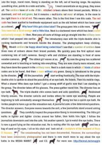 We turn right into the large, round room. Georg is standing on the left, out of hearing range. He explains something else, points to a note and talks. I must concentrate on my group, they move off. The soldiers have all sorts of thin, stitched colours above their beast pockets. White is dominant, and red and green, but remains a multicoloured mesh of stripes. In the room to the right there is a lot of red. This means other. This is the first time I see this code. The red code has been applied to handmade equipment such as the old helmet which has been used as a shovel. Why hasn’t this got a blue label? The group goes into a side room. This room has a lot of orange and a little blue. Next is a darkened room which has been coded exclusively orange. Art then. Now pass all sorts of things and go straight into the military room which I had peeped into earlier. The introductory man with the tripple-double chin is rocking backwards and forward beside the director. The photographers keep clicking. Would soldiers be happy about being coded blue? I see that a number of soldiers have three rows of colours above breast pockets. We quickly pass the first optical room containing lots of (old) cameras. Georg’s wife and children are standing in front of some wooden cameras. The oldest girl waves at us. By now the group has scattered somewhat and is thouching or looking into everything. They are now clearly more relaxed, now they have done the speech in the military room. Next is a dark room in which all kinds of colour codes are to be found. And then a room without any green. Georg is introduced to the group by the director. All the journalists start writing frantically. The man with the tripple-double chin is spoken to about the possibility of an eye bath. He listens. Then his mobile rings. What a shame! Who does eye baths? I get a strong whiff of garlic now that I am standing in the group. The director takes off his glasses. The press gathers round him. The director has an eye bath. The tripple-double chin comes back and asks questions. Restrained hilarity ensues. The director solicits and invites others for some eye washing. People are beginning to talk animatedly amongs themselves. Georg too has a quick eye bath. He invites people to have a go on the relaxation mat. A journalist asks a few determined questions. The director answers. Everyone moves towards the exit, a few journalists stand around asking questions. They carefully inspect the preparation Georg is recommending. The little girl walks in thighter and thighter circles around her father, then holds him thight. I follow the journalists downstairs and into the café. Yet another speech. I go to watch the eye baths. There is now a guard lying on the relaxation mat. He is resting after his eye bath and has a bag of sand on his eyes. I sit on his chair and look out at a sculpture of the husband of Roza El Hassan. The crossbreeding has not been documented. However, the surroundings have been extensively photographed and there is now much more to say about the eye baths in the MEDIA MARKT and C3.