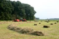 Other pictures show us working on the land.19 Beautiful blue skies accompany the image. The diversity of green colours illustrates nature in all its richness. It is the changing of the seasons that gives the Dutch landscape so many beautiful new colours and creates atmospheres in the blue sky that contrast completely with the green colours of the trees and landscape. Working on the land is for all ages: a tractor that transforms pieces of dried grass into packages of hay. Young boys are helping to put the pieces straight, so that the tractor can run over them by transforming them into hay packages. Human intervention can be noted: young and old invest their energy into this process. A current image for a rural surrounding illustrates the special relationship of the countrysider to nature, in particular the dependency on changes of the weather. Rain could poison this hay: there is time pressure and they work intensively with a (still) beautiful blue sky, without dark clouds above them.