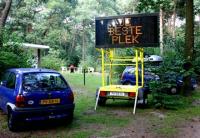 Met de tekstkar nog ingeklapt kom ik het tankstation in Balkbrug binnenrijden. ‘Mag u daar zo mee rondrijden mevrouw?’ Ik kijk naar de combinatie en zeg: ‘Ja…’ De breedte van de kar en het feit dat ik de tekstpanelen niet met de spiegels kan zien, baart deze man zorgen.